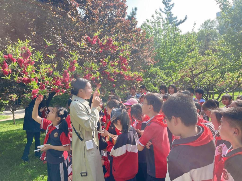 在曲阜师范大学生命科学学院教师的引导下,同学们近距离接触并了解了多种植物,包括碧桃、杜鹃花、紫叶李、玉兰以及梨树等。活动过程中,同学们不仅对各种植物的特点和生长习性有了更深入地了解,还亲手进行了观察和记录,进一步加深了对植物世界的认知。